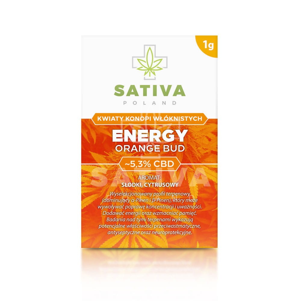 Orange Bud to kwiaty konopi siewnych o dojrzałym, ciemno-zielonym kolorze. Przyjemny, charakterystyczny zapach tej odmiany cechuje się intensywnym aromatem z subtelnymi nutami słodkich cytrusów. Orange Bud to susz uprawiany metodą indoor. Kwiaty zawierają ~5,3% CBD oraz <0,3% THC.