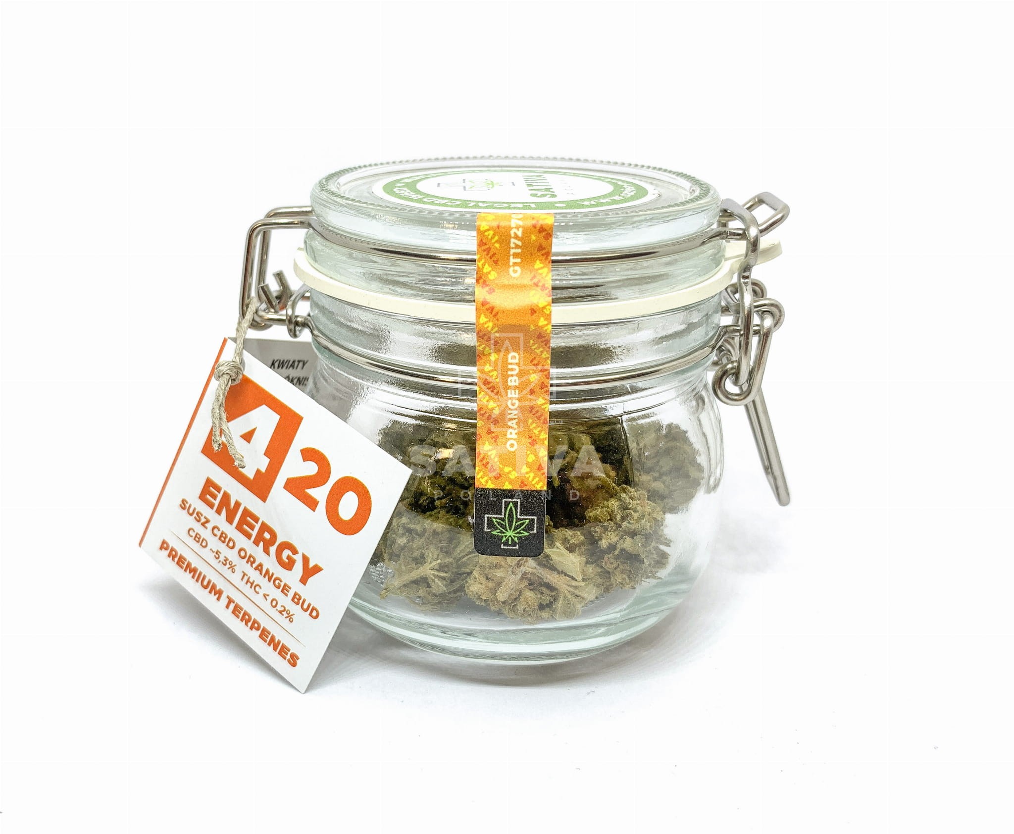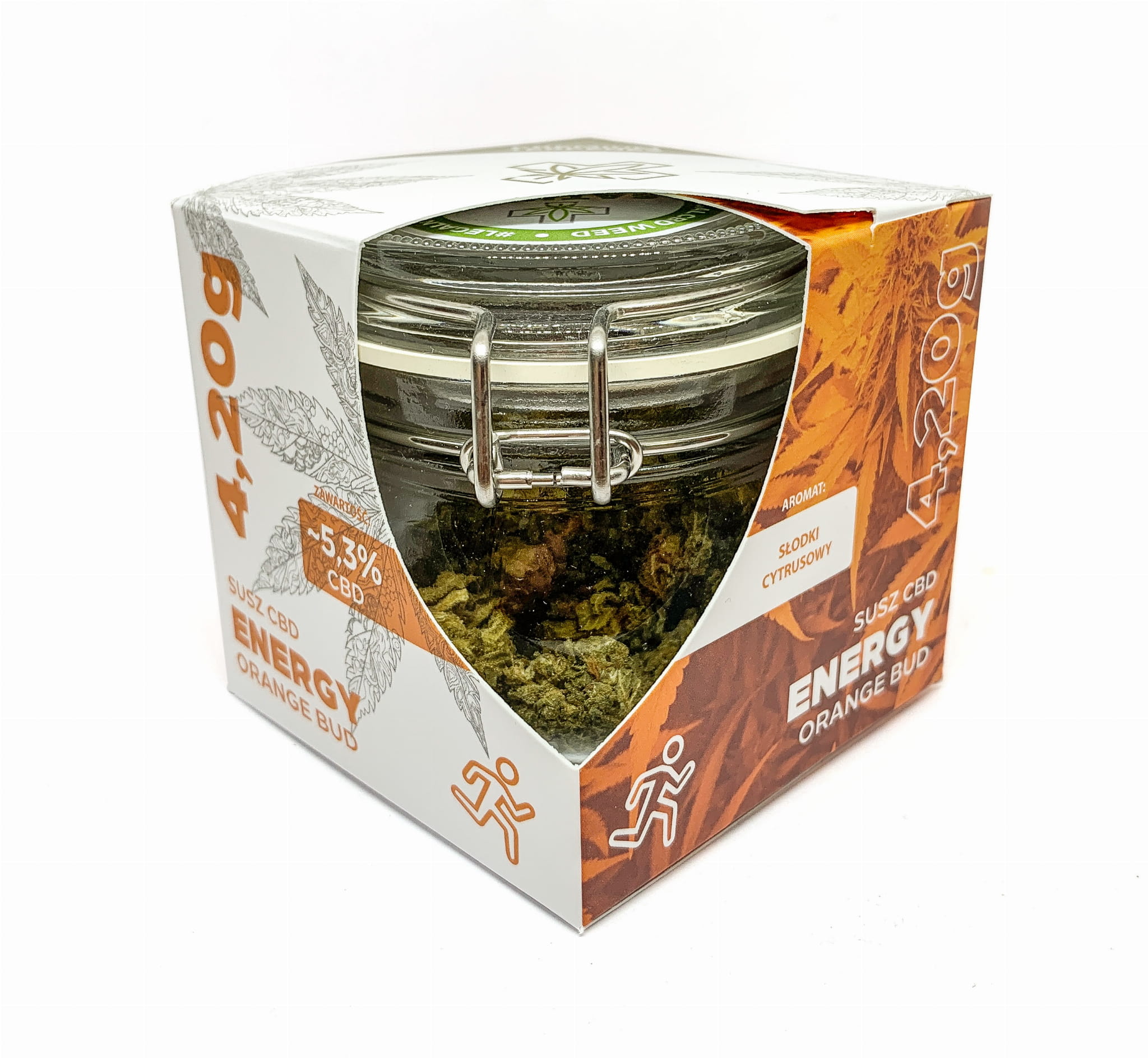 Orange Bud to kwiaty konopi siewnych o dojrzałym, ciemno-zielonym kolorze. Przyjemny, charakterystyczny zapach tej odmiany cechuje się intensywnym aromatem z subtelnymi nutami słodkich cytrusów. Orange Bud to susz uprawiany metodą indoor. Kwiaty zawierają ~5,3% CBD oraz <0,2% THC.