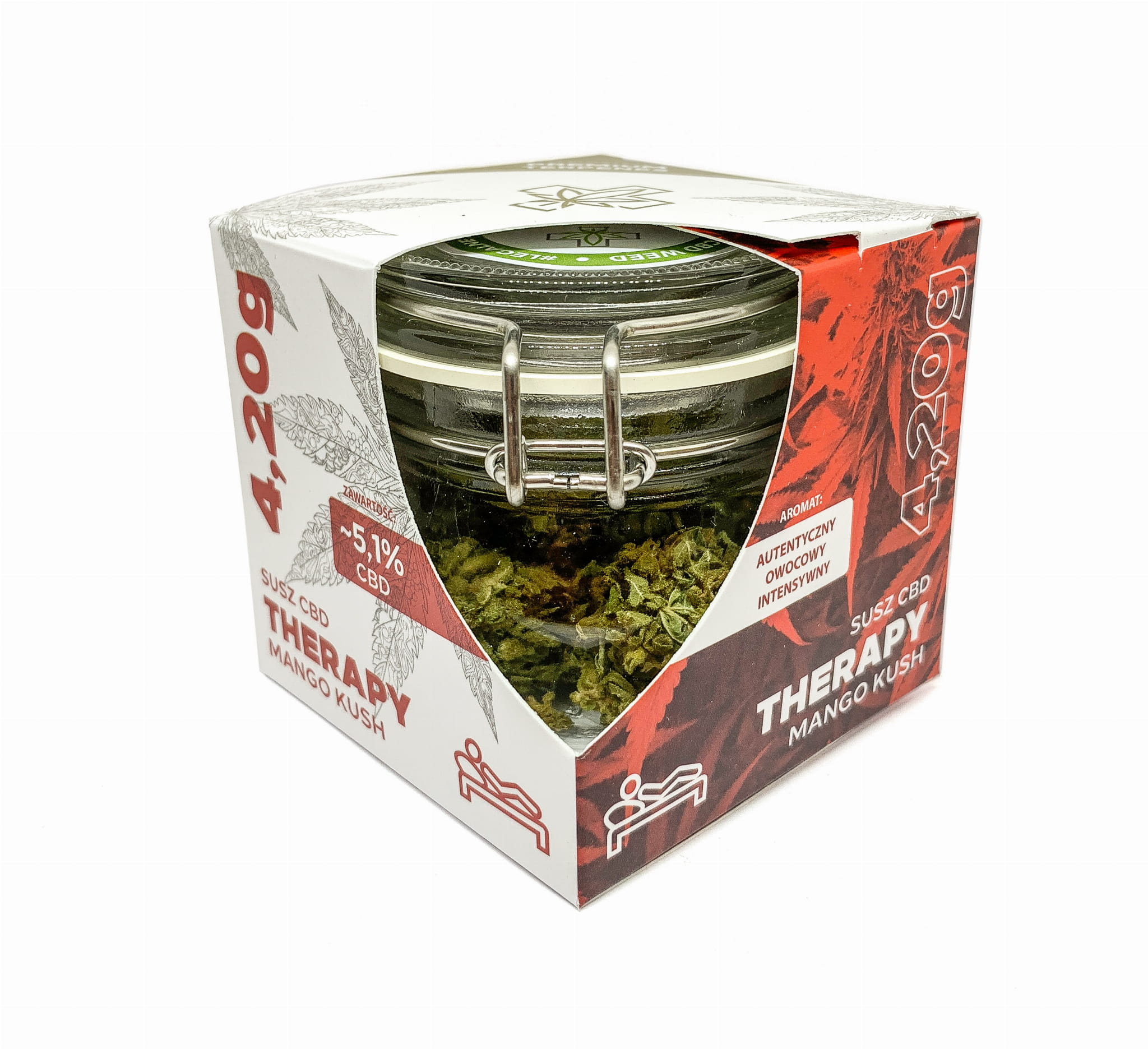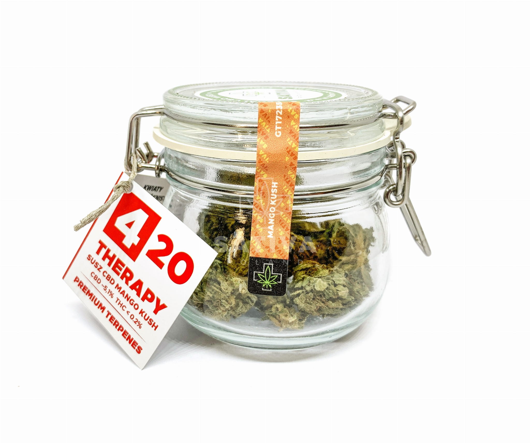 Mango Kush to kwiaty konopi siewnych o dojrzałym, ciemno-zielonym kolorze. Niewielkie topki są bogato obsypane trichomami, które są odpowiedzialne za przyjemny aromat suszu. Zapach jest charakterystyczny dla odmiany mango – kwiaty cechują się słodkim i cytrusowym aromatem z subtelnymi nutami mango. Mango Kush to susz uprawiany metodą indoor, który zawiera CBD ~5,1% oraz THC <0,2%.