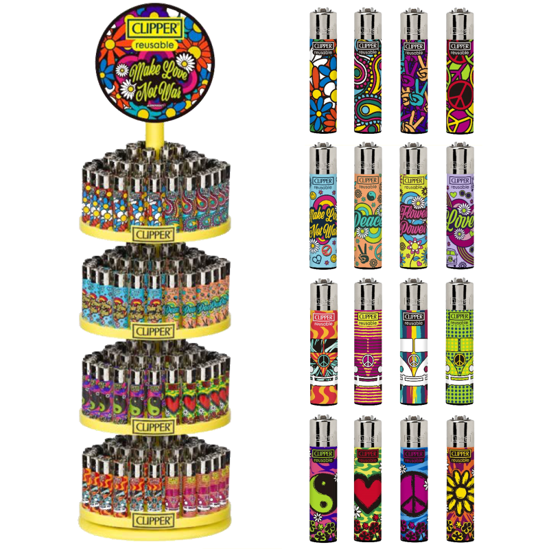 “Hippie Party” to jedna z najbardziej pozytywnych serii wypuszczonych przez markę Clipper. Są to niezawodne zapalniczki dla osób, które w życiu kierują się zasadą “make love, not war”. Wybierz jeden z 16 wzorów i ciesz się z udanego zakupu!