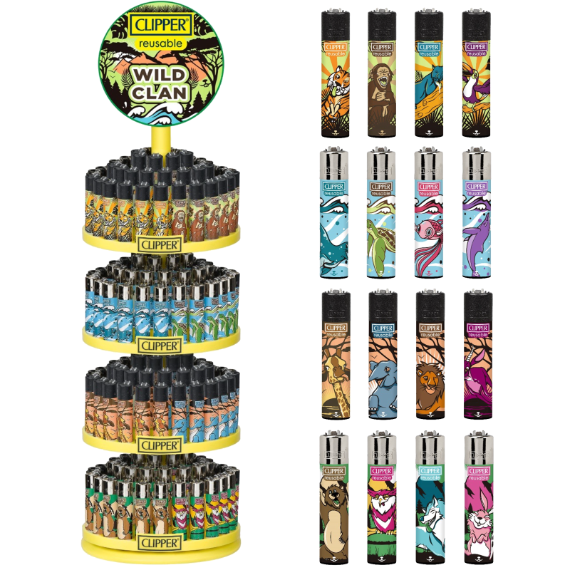 Seria “Wild Clan” powstała z myślą o odkrywcach przygód kochających dziką przyrodę. Wybierz jeden z 16 wzorów ze zwierzętami i ciesz się niezawodnością zapalniczek marki Clipper. Składając zamówienie, podaj nazwę zwierzęcia, które widnieje na obudowie.